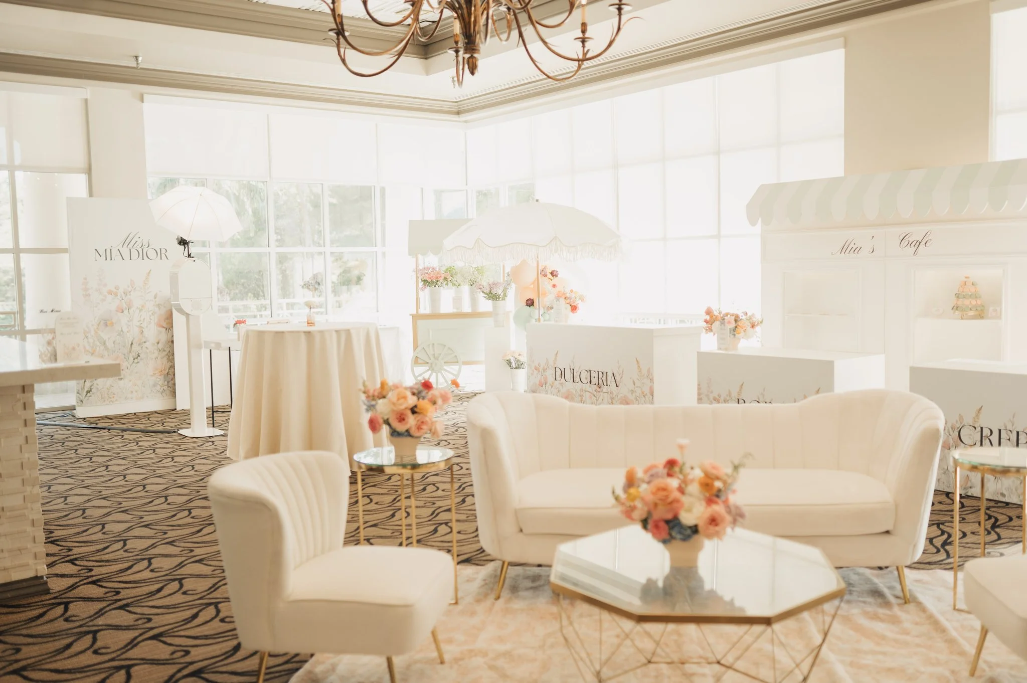 Guests were treated to a menu that matched the exquisite décor. The pièce de résistance was a magnificent cake, artfully decorated to echo Dior’s iconic floral motifs. With layers of delicate fondant, intricate piping, and edible flowers, it was truly a work of art. The dessert spread also featured delightful treats such as crepes, boba, and a dulceria bar stocked with concha ice cream and Mia’s favorite candies, ensuring that every sweet craving was satisfied.