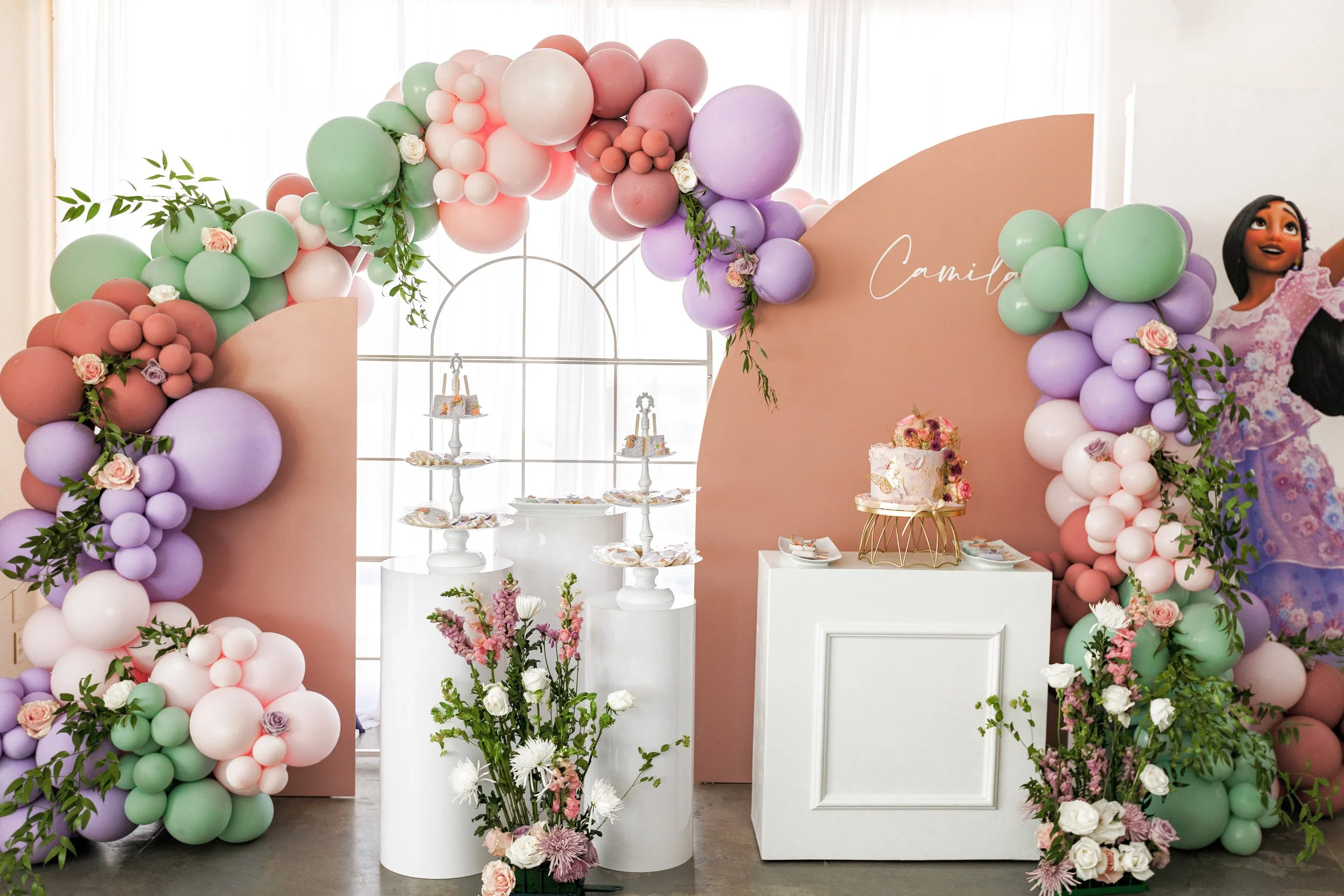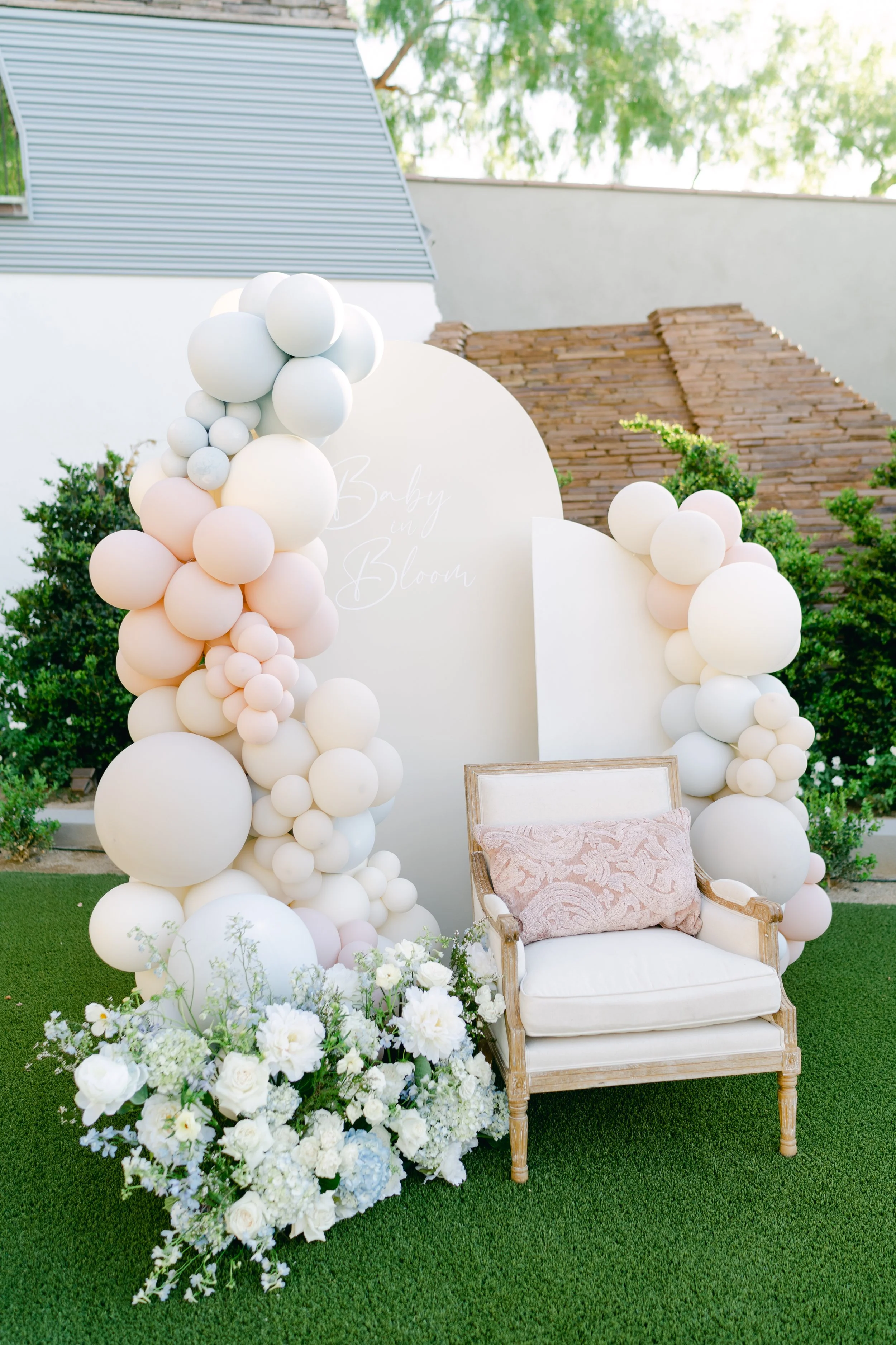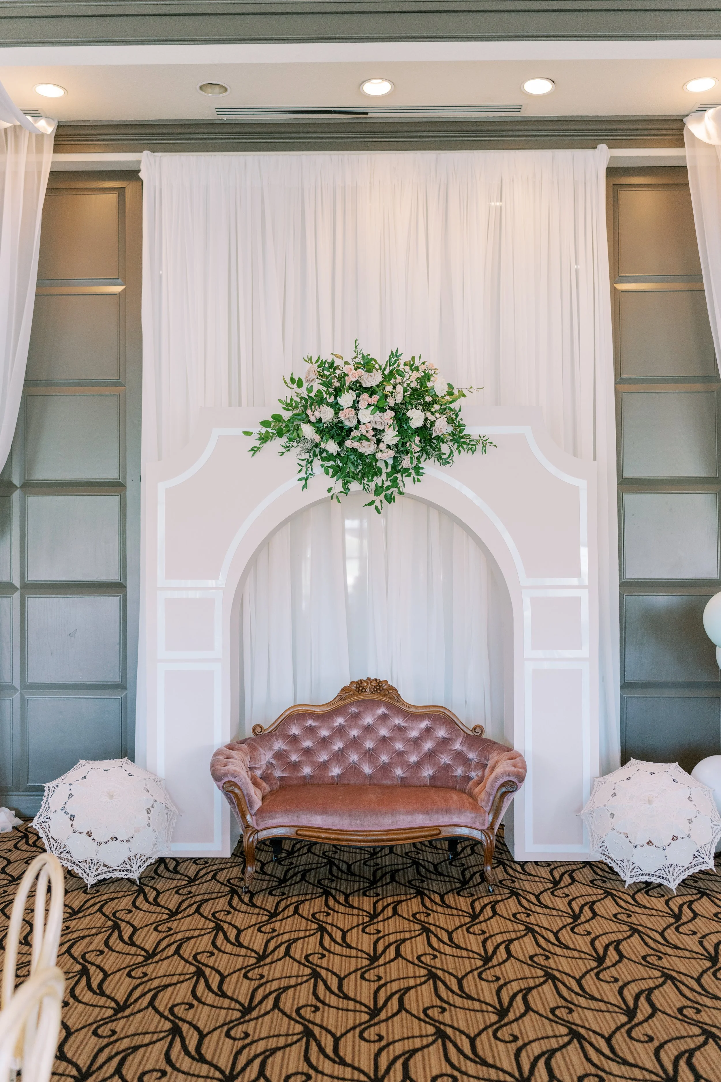Note: Backdrop does not include florals, balloons, decor, or decals. Custom decals can be added for an additional fee.